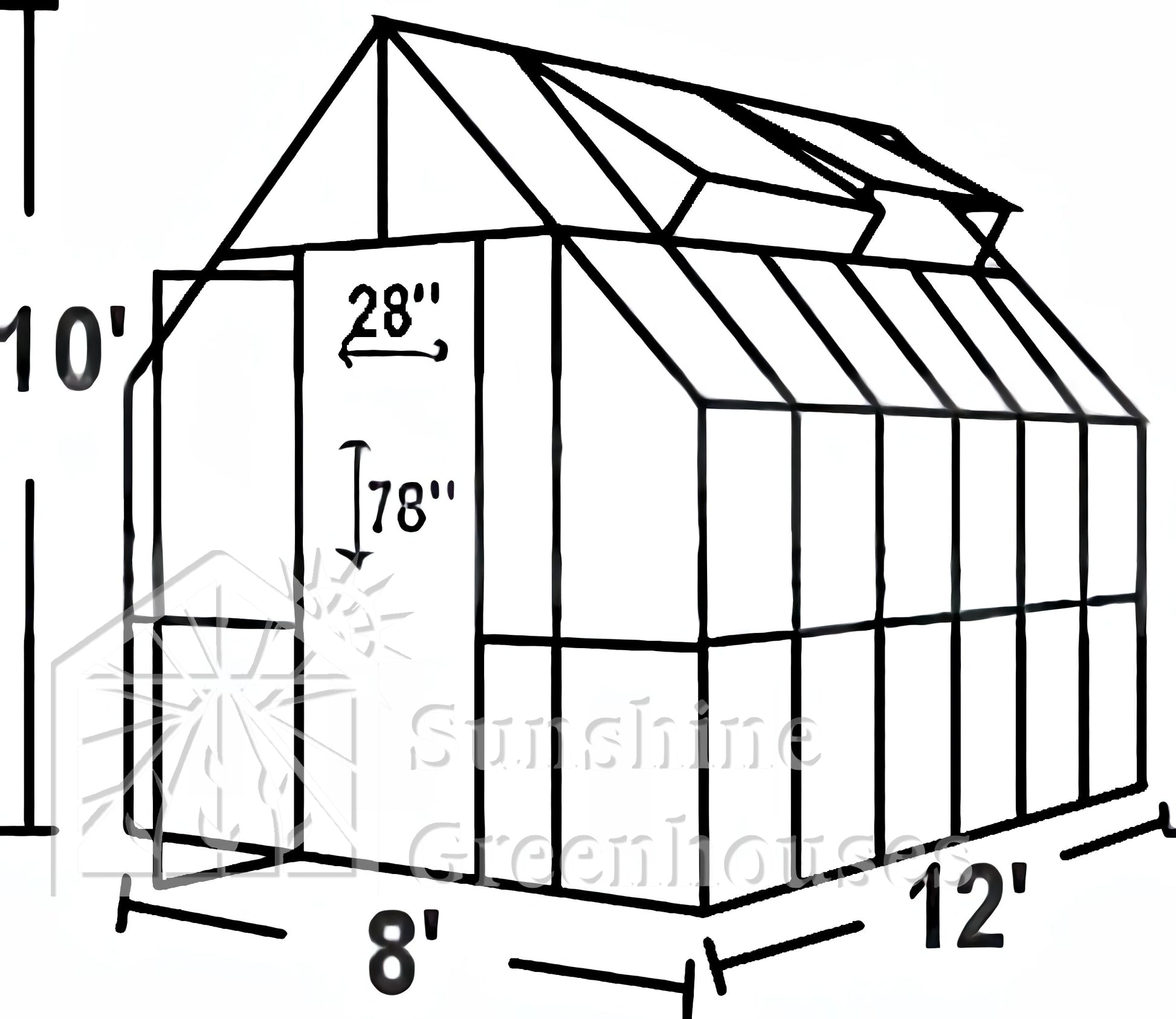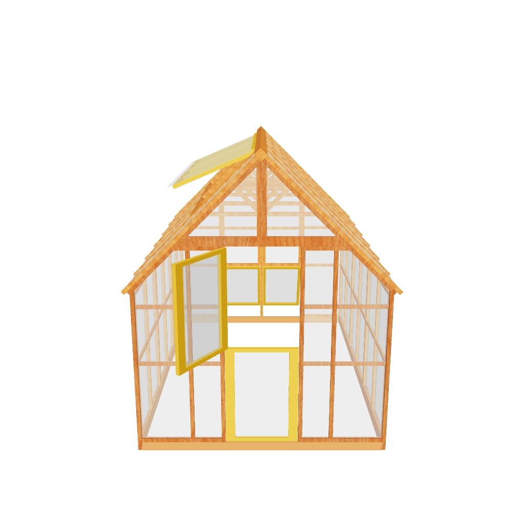 The 45-degree roof slope transmits low-angle sun in the winter and reflects high-angle sun in summer. This increases heat in the winter and reduces it in the summer. It also provides ample headroom and plant-hanging space. The steep roof slope sheds snow in the winter and can withstand a snow load of 18 lbs. per square foot.